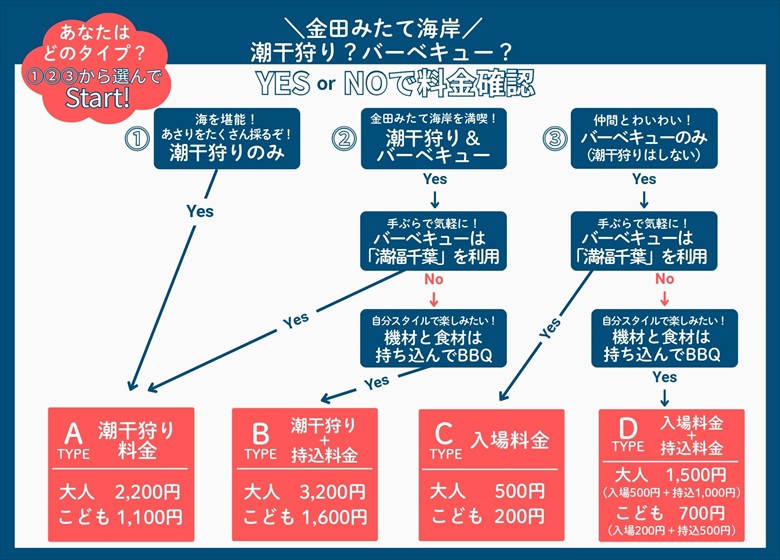 QRコードorアソビュー!アプリから申し込み&チケット購入 →当日はスマートフォンを持って金田みたて海岸券売窓口でチケットと引き換え |